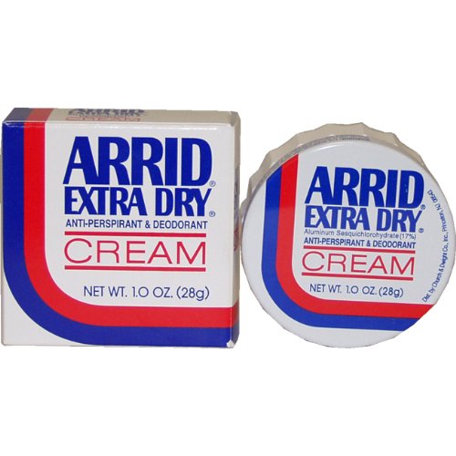 Arrid Extra Dry Antiperspirant and Deodorant Cream 28g - It vanishes into your skin to help stop wetness and to help keep you dry and odor free for 24 hours. Contains an anti-stain formula has a gentle formula that will not irritate normal skin. Apply to entire underarm. Rub in well. Replace cap tightly.