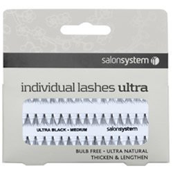 Salon System Individual Bulb Free Ultra Black Medium Flare Lashes - Ultra natural, bulb free individual lashes, blend perfectly with the natural lash for the ultimate finish. Medium - use to create length at the outer corners and toward the centre of the eye.