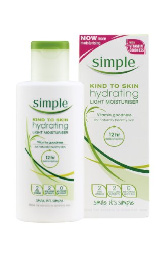 Simple Kind To Skin Hydrating Light Moisturiser 125 ml - Simple products are 100% perfume and colour free with no unnecessary additives; and have active ingredients selected to care for the needs of even sensitive skin. Everyone's skin requires moisturisation to keep it smooth and supple. Our easily absorbed Hydrating Light Moisturiser will do just that, and it a great base for make-up too. pH balanced and with Pro-Vitamin B5, this all day moisturiser leaves your skin soft and smooth. Hydrates, Softens, Smoothes