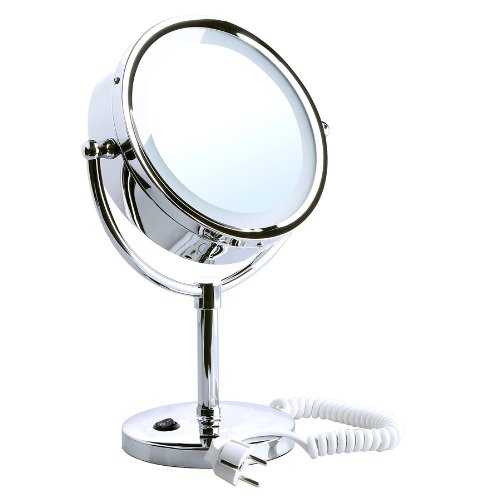 Songmics Cosmetic Mirror with LED light, Double-faced Standard + 10x Magnification, 21 cm Diameter BBM005 - - The ladies can make up herself and the gentlemen can shave by using mirrors.