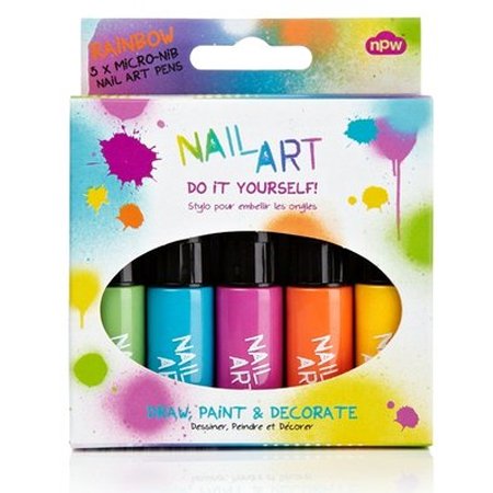 Nail Art Pen - Rainbow Brights - 5 Pack - Paint your nails in your choice of colour. Use the micro nib to draw the design of your choice (be artistic!). When dry, seal with a clear varnish over the top of your designs Packs contain: 5 Nail Art Pens. Each with a micro nib for drawing and brush for painting.